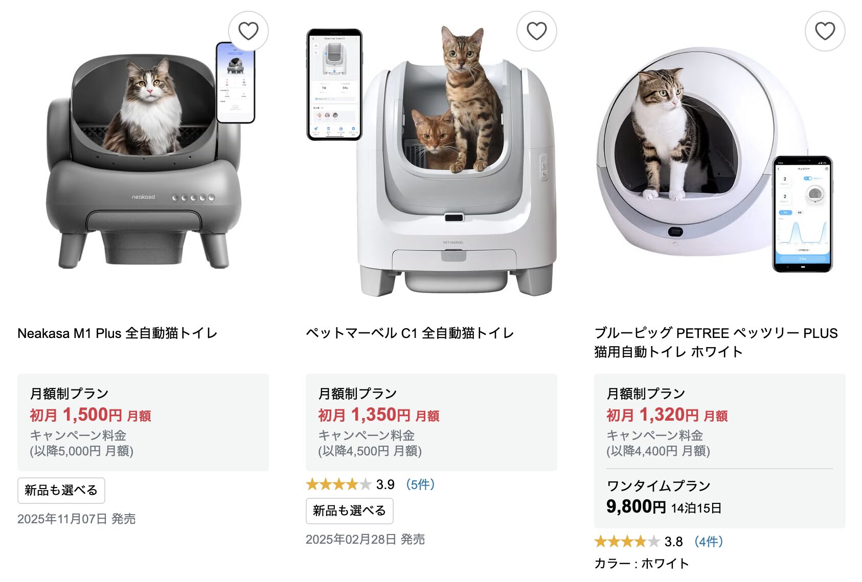 | 取り扱いモデル | Coco | PURE | Neakasa M1など多数 |